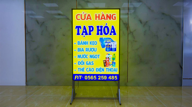 Thông tin cần hiển thị: Một bảng hiệu tạp hóa cần thể hiện những thông tin cơ bản như tên cửa hàng, giờ mở cửa, thông tin liên hệ và các ưu đãi (nếu có). Đảm bảo thông tin trên bảng hiệu nổi bật, dễ nhìn và dễ tiếp cận. Các thông tin quan trọng nên được đặt ở vị trí dễ thấy để khách hàng không phải mất công tìm kiếm.