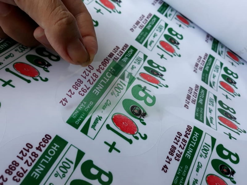 - In Flexo: Công nghệ in này có hệ thống tự bể ngay sau quá trình in. Các phần dư thừa của sản phẩm sẽ được bóc rời khỏi phần đế dán. Tuy nhiên, nhược điểm của in flexo là giá thành khá cao.