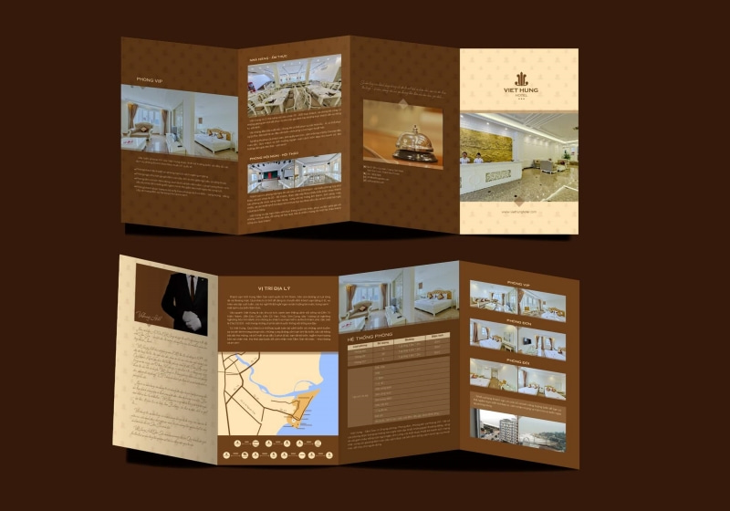 - Brochure sử dụng thiết kế nội dung 6 mặt, gấp 3 (tri-fold Brochure) hoặc 4 mặt, gấp đôi (bi-fold-Brochure).